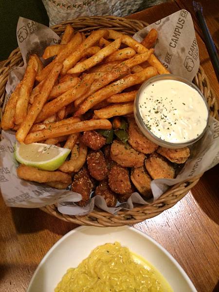 首先上來的是 總匯炸物拼盤 NT 390,這個份量非常多,以我們三個女生來講真的是超級多.....
