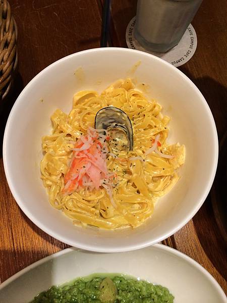 另一道主餐 奶油海鮮明太子扁麵 NT 260 ,看似不多但其實份量也很紮實呢!!