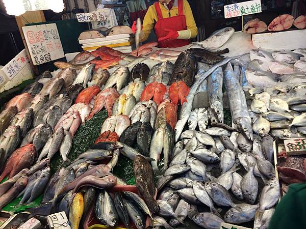 每攤魚販的攤位都是五顏六色~每隻魚都很新鮮,有飽滿透光的大眼睛~~