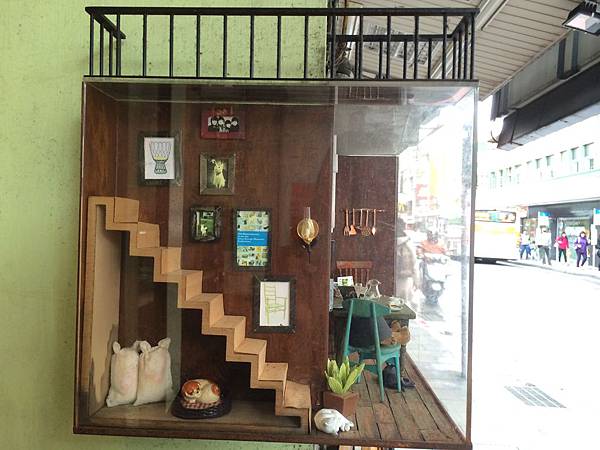 往二樓的門口有個他們自做的小箱子,裡面有店內的裝潢跟擺飾